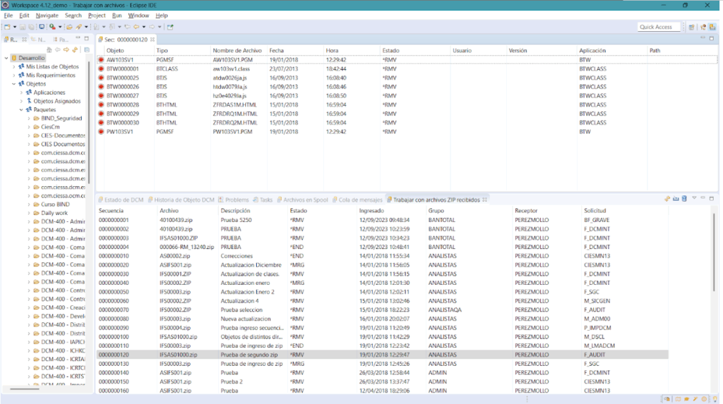 Modulo con interface grafica desarrollado para IBM Rational Developer for i y Eclipse que permite administrar los objetos de distintas plataformas.
