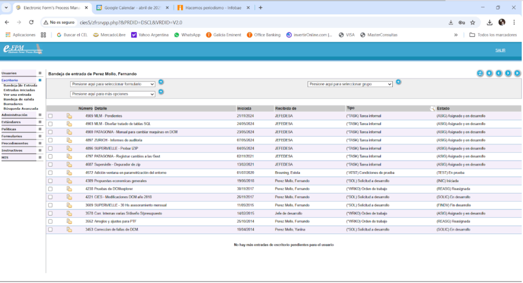 Una interface amigable para la administración de distintos formularios, solicitudes, requerimientos, condiciones de pruebas, ordenes de trabajo y cualquier formulario que se desee administrar.