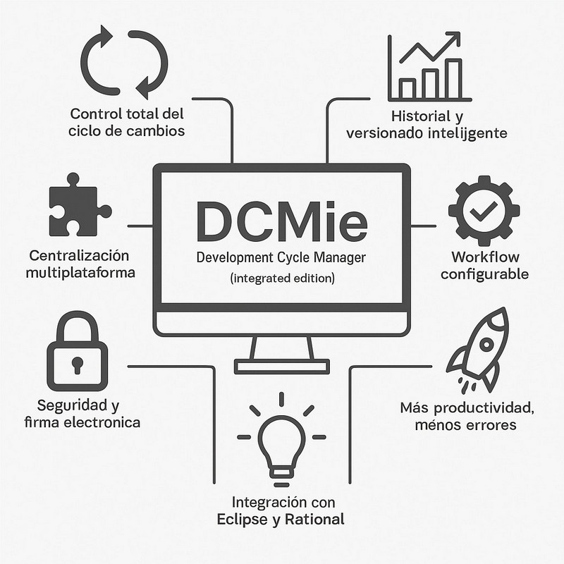 Sí. DCMie se integra con Eclipse y con herramientas del entorno Rational, como Rational Team Concert o Rational Quality Manager. Esto permite trabajar con estándares modernos sin perder trazabilidad ni control.
